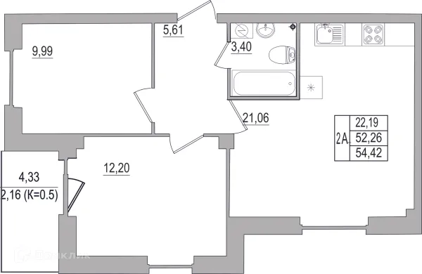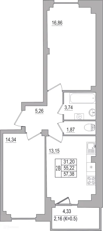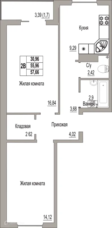2 комн. квартира в Пскове в ипотеку от 34 774 руб/месяц