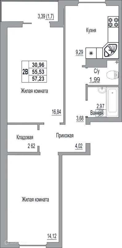 2 комн. квартира в Пскове в ипотеку от 33 489 руб/месяц