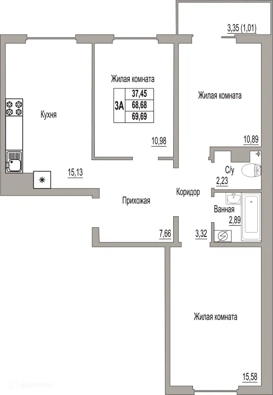 3 комн. квартира в Пскове в ипотеку от 42 041 руб/месяц