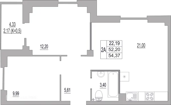 2 комн. квартира в Пскове в ипотеку от 33 710 руб/месяц