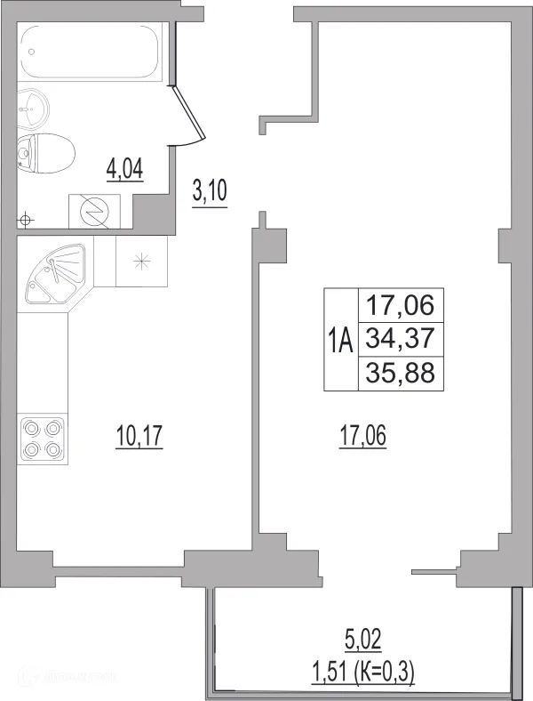 1 комн. квартира в Пскове в ипотеку от 24 051 руб/месяц