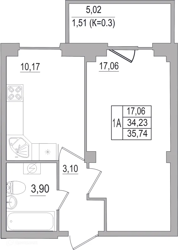 1 комн. квартира в Пскове в ипотеку от 17 524 руб/месяц