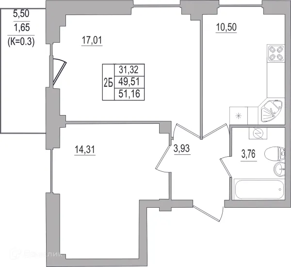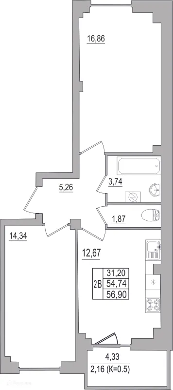 2 комн. квартира в Пскове в ипотеку от 31 863 руб/месяц