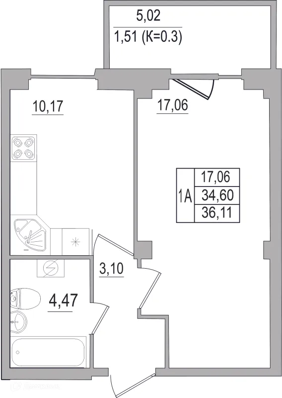 1 комн. квартира в Пскове в ипотеку от 17 660 руб/месяц