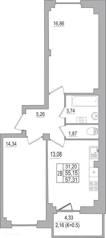 2 комн. квартира в Пскове в ипотеку от 34 602 руб/месяц