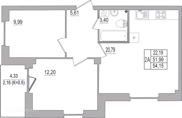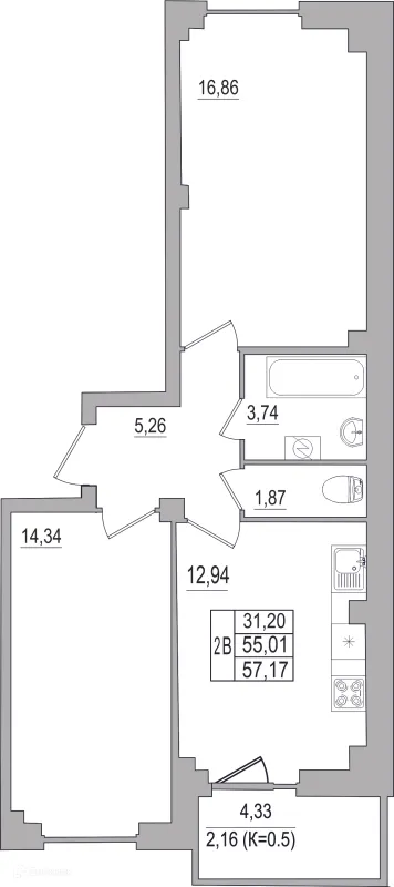 2 комн. квартира в Пскове в ипотеку от 34 774 руб/месяц