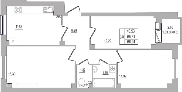 3 комн. квартира в Пскове в ипотеку от 39 935 руб/месяц