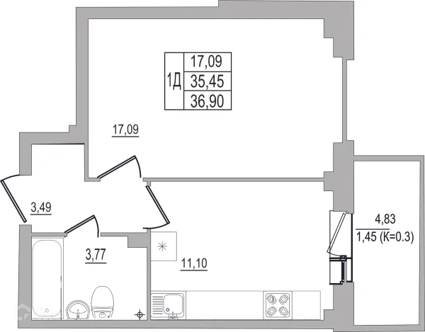 1 комн. квартира в Пскове в ипотеку от 23 007 руб/месяц