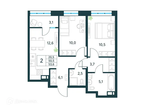 2 комн. квартира в Чите в ипотеку от 69 715 руб/месяц