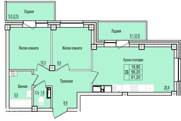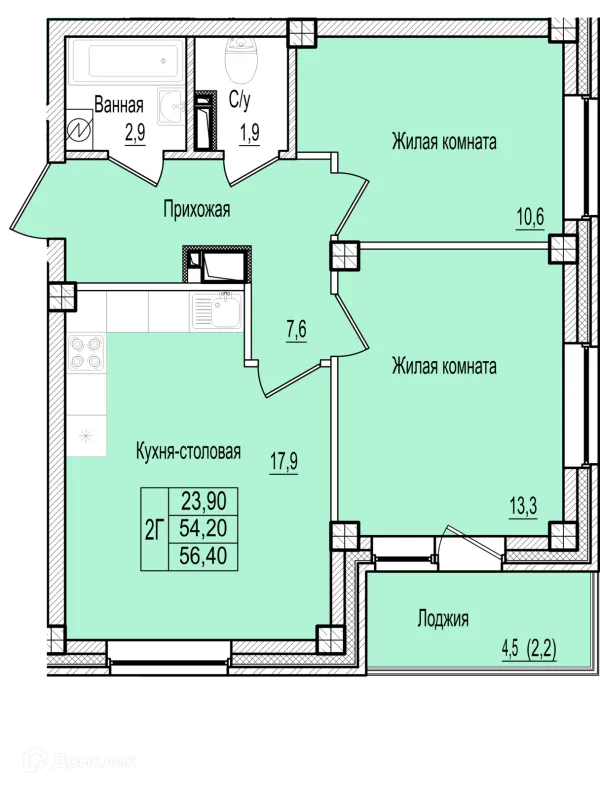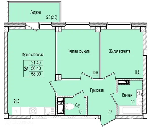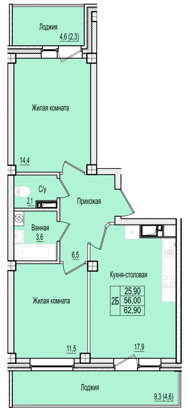 2 комн. квартира в Пскове в ипотеку от 39 859 руб/месяц