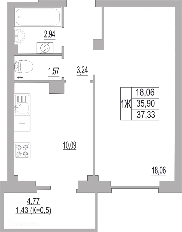 1 комн. квартира в Пскове в ипотеку от 20 697 руб/месяц