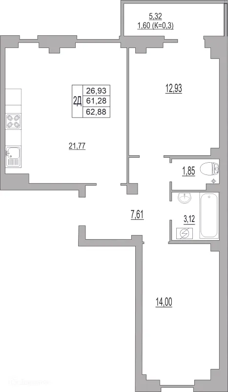 2 комн. квартира в Пскове в ипотеку от 39 849 руб/месяц