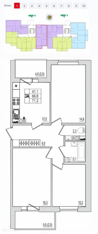 3 комн. квартира в Пскове в ипотеку от 44 762 руб/месяц
