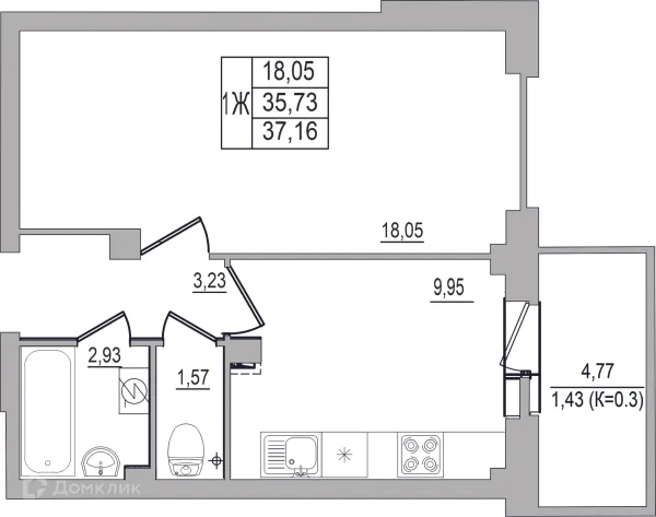 1 комн. квартира в Пскове в ипотеку от 23 079 руб/месяц