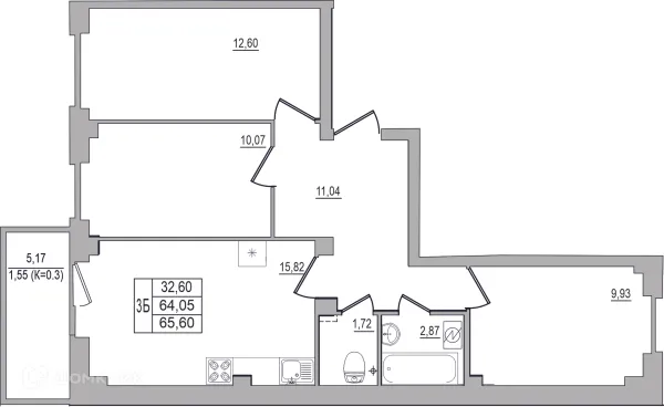3 комн. квартира в Пскове в ипотеку от 39 469 руб/месяц